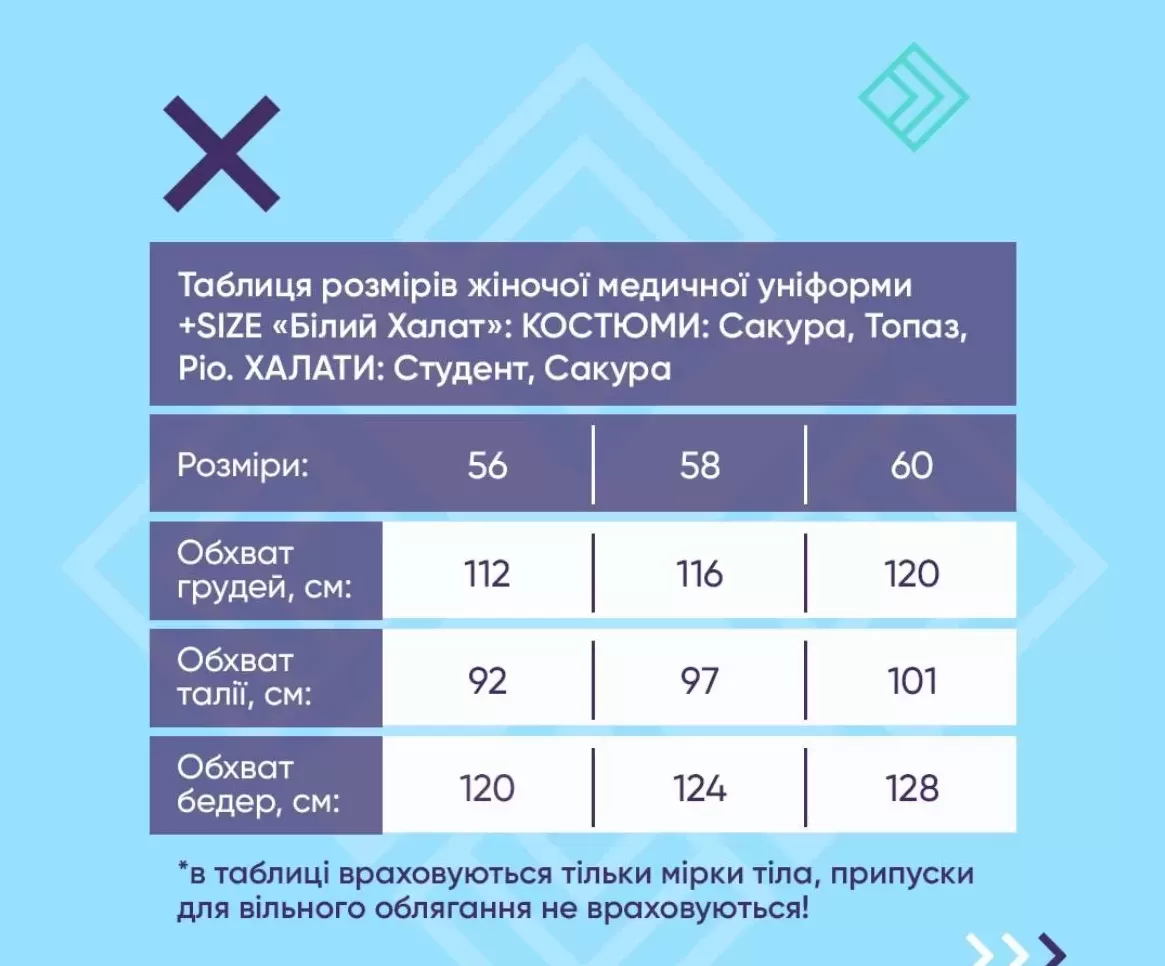 Медична сорочка жіноча Сакура біло-м'ятна +SIZE